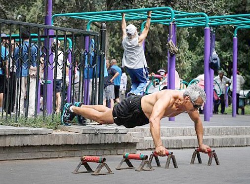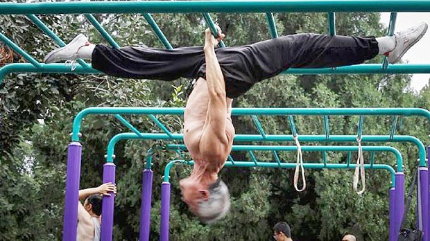 Например, 67-ми летний Гэн Чжи настоящий человек-паук. 70-ти летний Лю – лучше всех «раскачивается» на турнике держась лишь на двух ремнях.