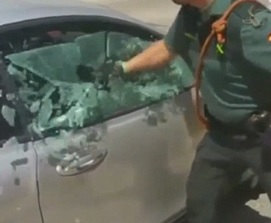 Беспечный хозяин питбуля запер свою собаку на 30-ти градусной жаре и ушел по своим делам. Проходящий мимо полицейский через окно увидел несчастное животное внутри машины. Он подбежал к окну и дубинкой разбил окно, чтобы вытащить питбуля на воздух.